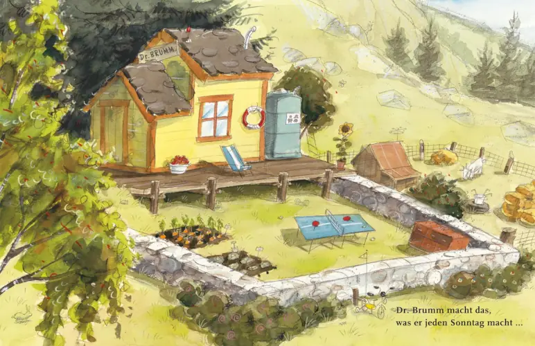 Die Geschichte ist ein echter Slapstick-Spaß mit temporeichen Bildern, bei denen man genau hinschauen muss, um jedes Detail zu entdecken. Ich mag besonders, wie sich die Szenen überschlagen – fast wie in einem guten, alten Zeichentrickfilm, den wir Eltern noch aus unserer Kindheit kennen. Und obwohl alles völlig chaotisch abläuft, schwingt immer diese liebevolle Wärme mit, die Dr. Brumm so sympathisch macht.