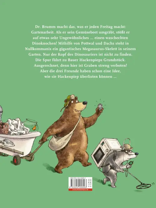 Schon bald steht ein beeindruckender Megasaurus in Dr. Brumms Garten – naja, fast: Der Kopf fehlt noch! Die Spur führt auf das Grundstück von Bauer Hackenpiep, der dort jegliches Graben strengstens untersagt. Doch das hält unsere drei Hobby-Archäologen natürlich nicht auf. Mit jeder Menge Erfindergeist und einer guten Portion Unsinn schmieden sie einen Plan, um doch noch an das letzte Skelettteil zu kommen.
